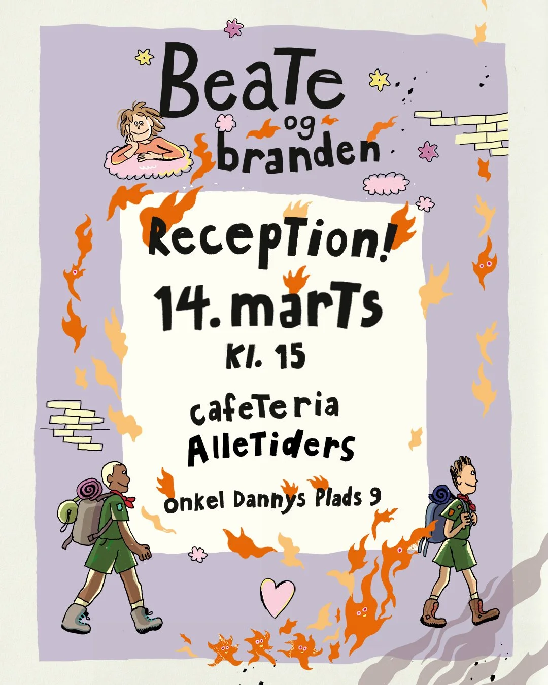 This week Beate & Branden (“Beate and the fire”) is out in Denmark. It’s an illustrated chapter book written by Alexandra Moltke Johansen, illustrated by me and published by Gads Forlag.