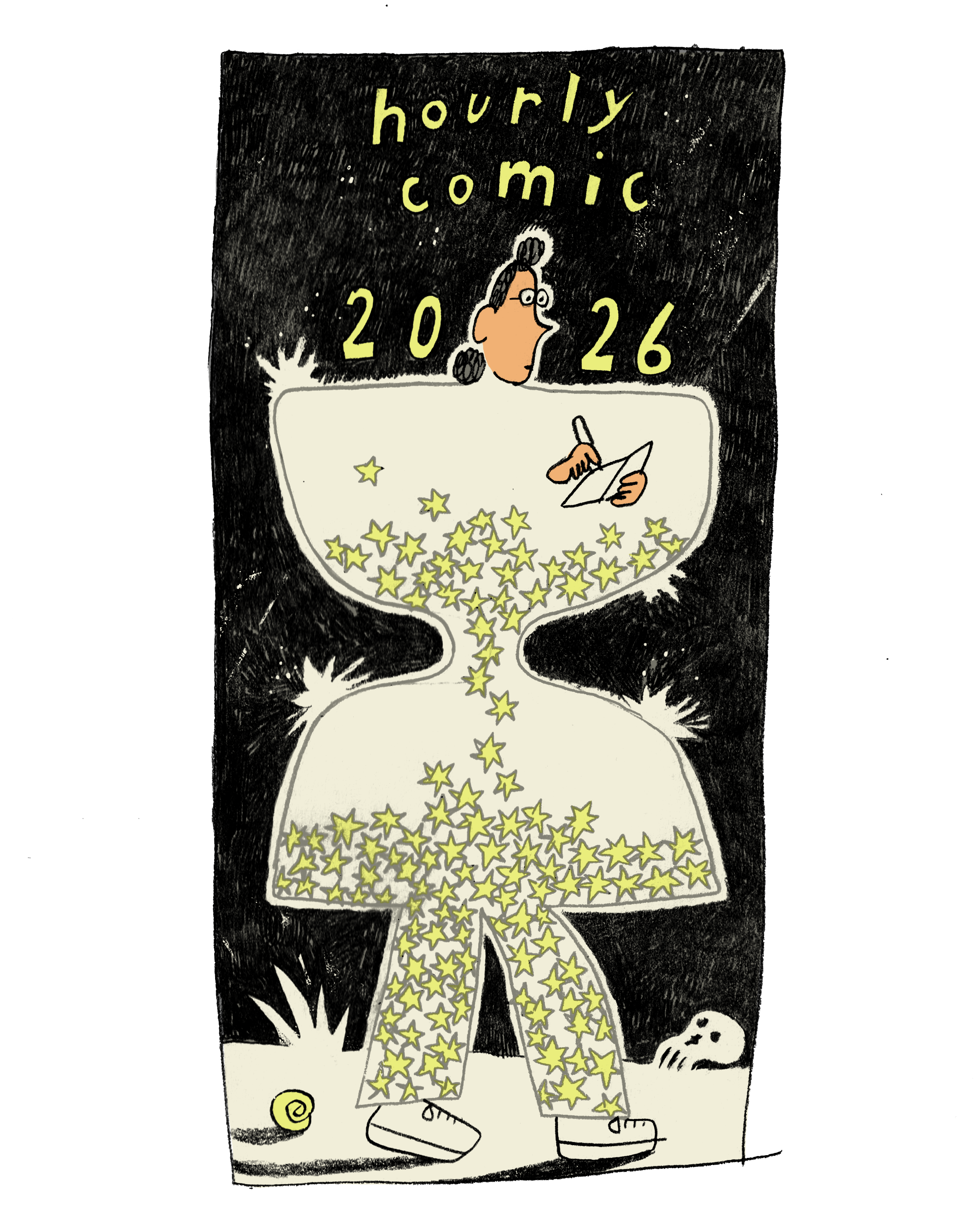 On Sunday we travelled back to Copenhagen, which coincided with “hourly comics day” (which this year, unbeknownst to me, had been moved a week to Feb 8), and it was suggested by my friend Mari Ahokoivu — who is also a fan of drawing challenges and sketchbook practices — that we do it together.